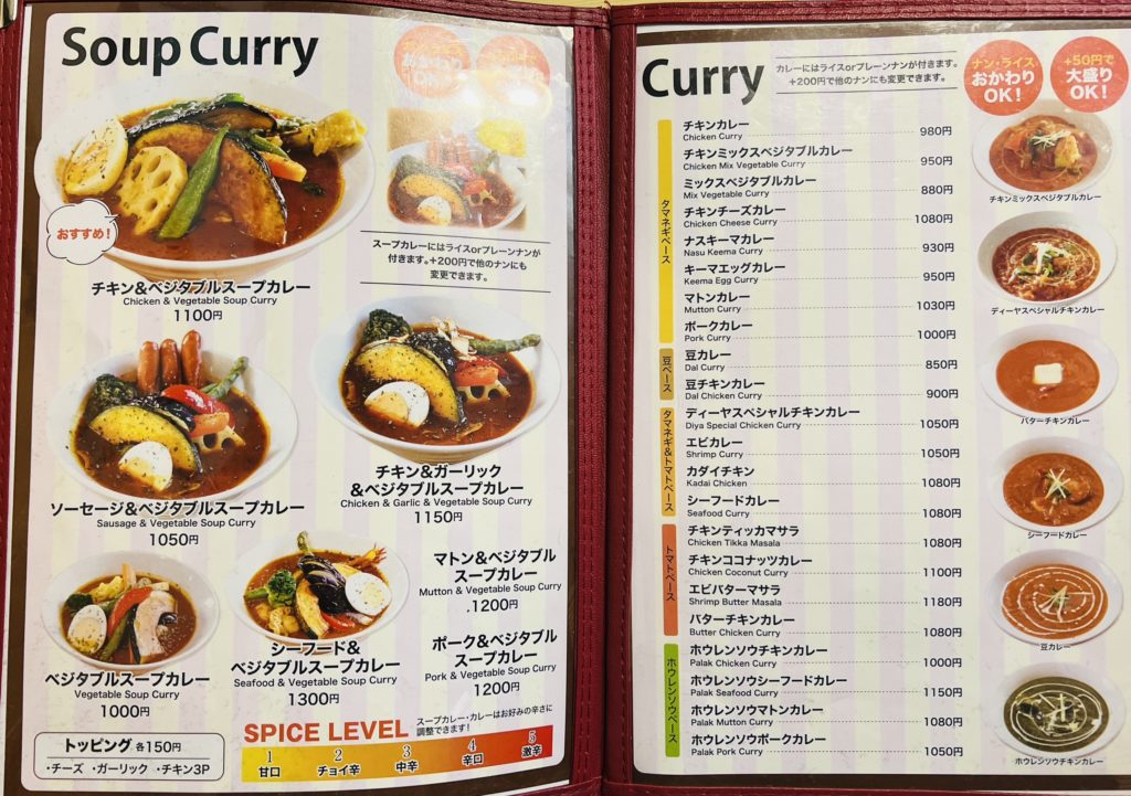 宇和のカレー屋DIYA(ディーヤ)のメニュー