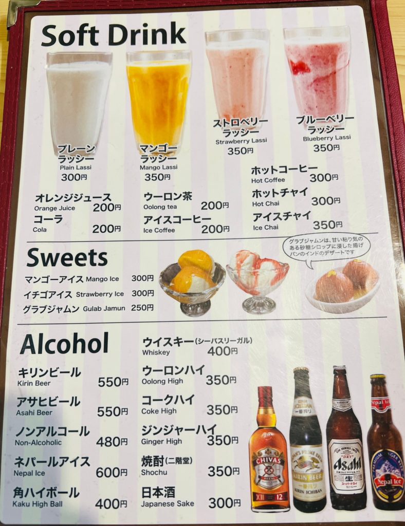 - カレー(ナンorご飯付):850円~1,300円