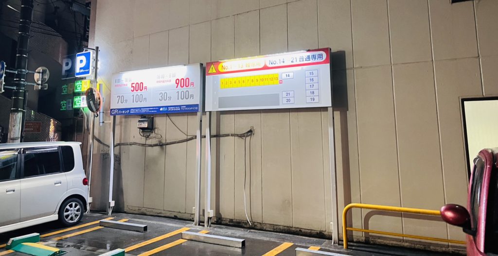 料金は18:00~8:00は30分100円で最大900円、8:00~18:00は70分100円で最大500円です。