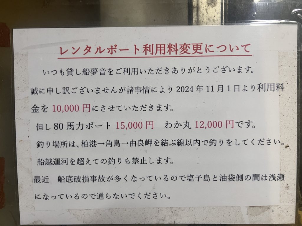 レンタルボート「夢音」のボートレンタル料金&釣行範囲