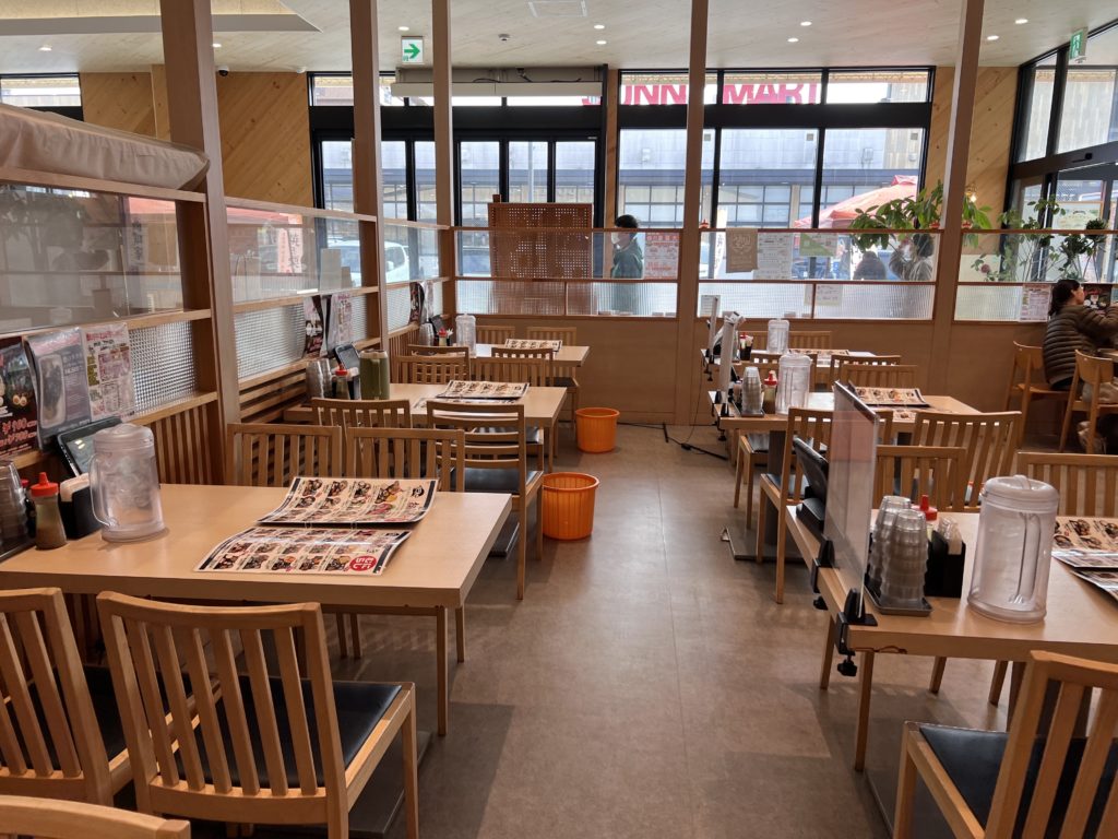 店内は天井が高く、木の温もりを感じる開放的で明るい空間です。