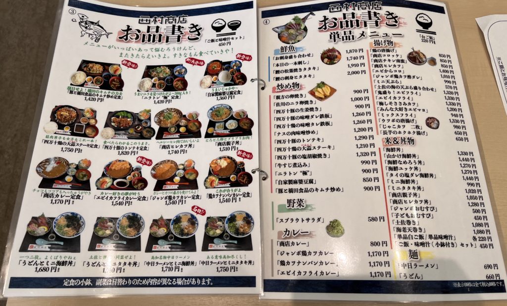 アグリコレット西村商店のメニュー