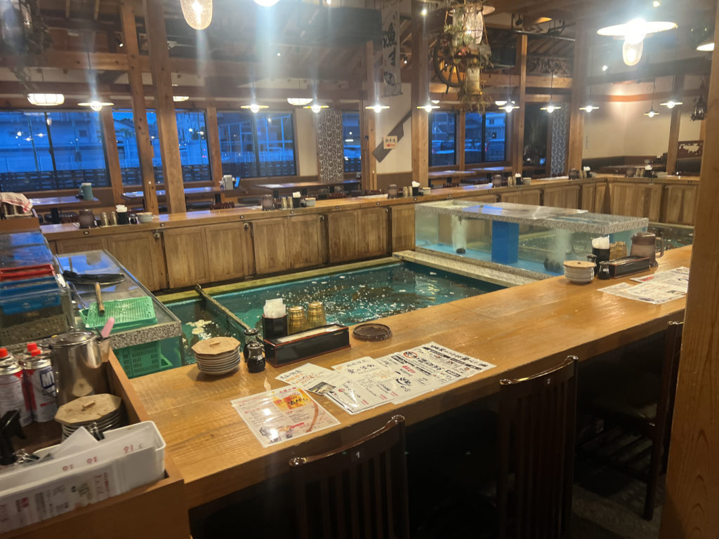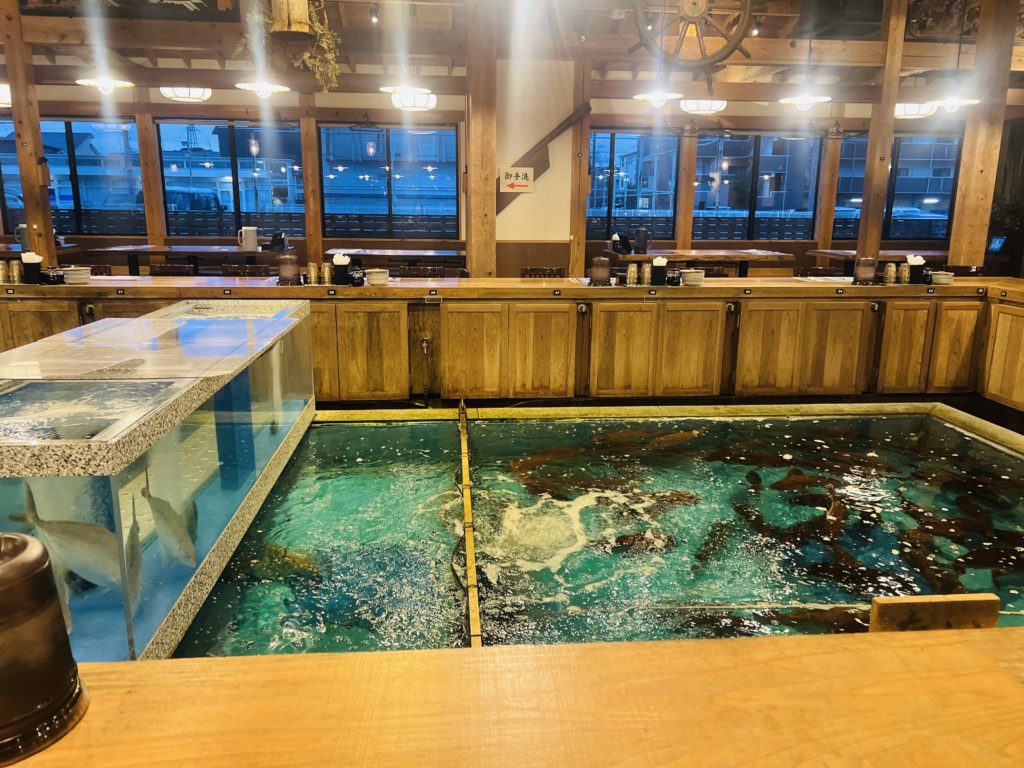 店内中央には大きな生け簀があります。魚を眺めながら食事を楽しめます。