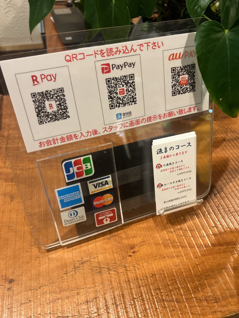 クレジットカード(Visa、Mastercard、JCB、AMEX、Diners)はもちろん、PayPayや楽天ペイ、au PAYなどのQRコード決済も利用可能です。
