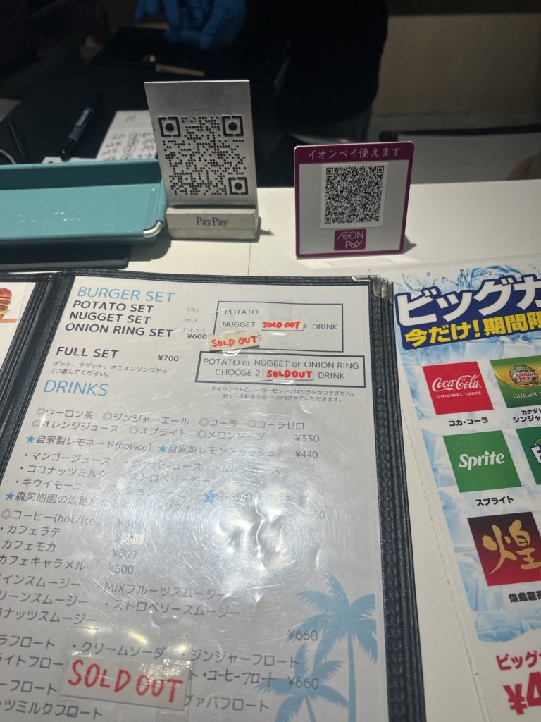 クレジットカード(Visa、Mastercard、JCB等)はもちろん、PayPayやAEON PayなどのQRコード決済も利用可能です。