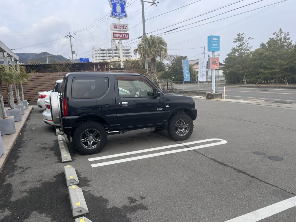 国道28号線沿いに位置しており、水色の看板とヤシの木が目印です。目の前が海という絶好のロケーションのため、特に週末のランチタイムは混雑しやすく、満車になることもあります。スムーズに駐車したい場合は、開店直後や午後のカフェタイムを狙って訪問するのがおすすめです。