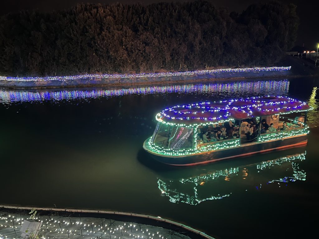 船にも電球が装飾されていました。