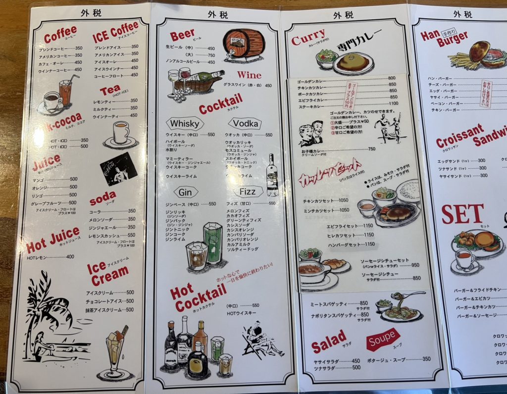 - ミルク・ココア(ホット/アイス):350円〜500円