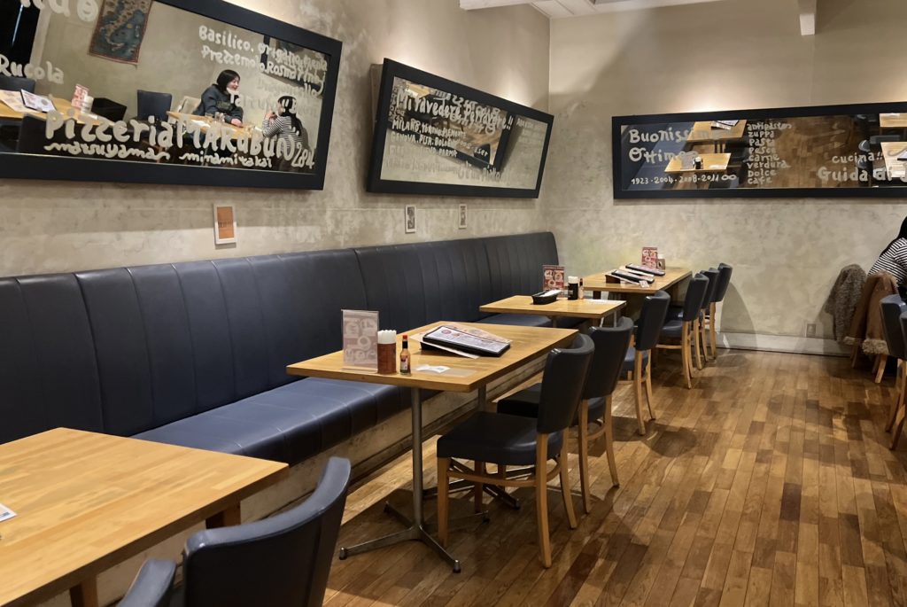 ピッツェリア マルブン 南高井店の店内は、天井が高く開放感あふれる空間が広がっています。お一人様から大人数のグループまで幅広く対応可能な全90席が用意されています。