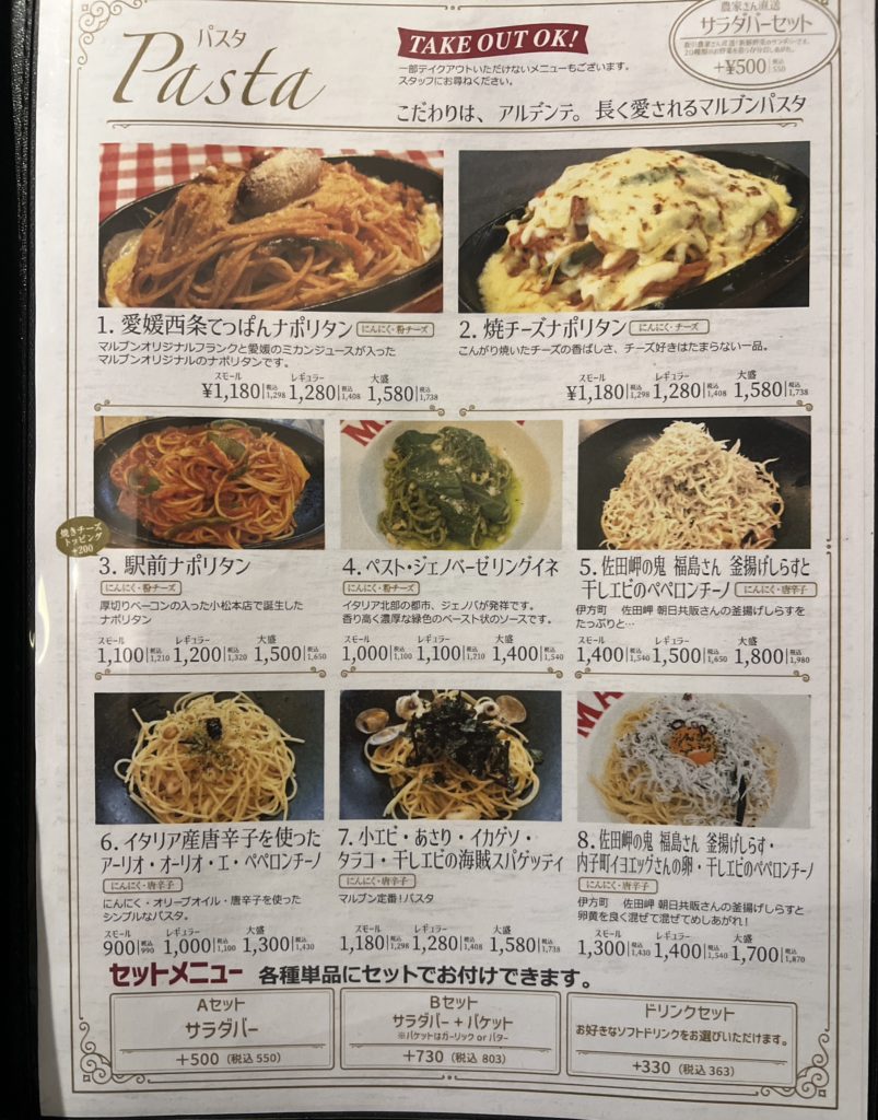 愛媛西条てっぱんナポリタン:1,298円 / 1,408円 / 1,738円