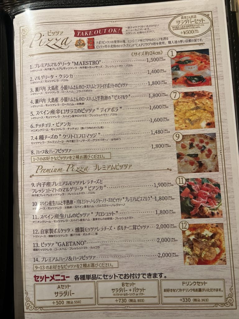 - 1. プレミアムマルゲリータ “MAESTRO”:1,650円