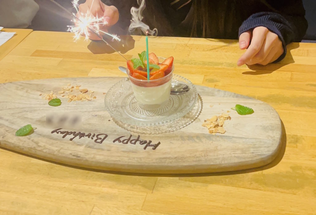 入店したのは20:00でお店を出たのが21:00でした。ぎりぎりの時間だったものの、快く対応してもらい、とても満足できる誕生日のお祝いができました。