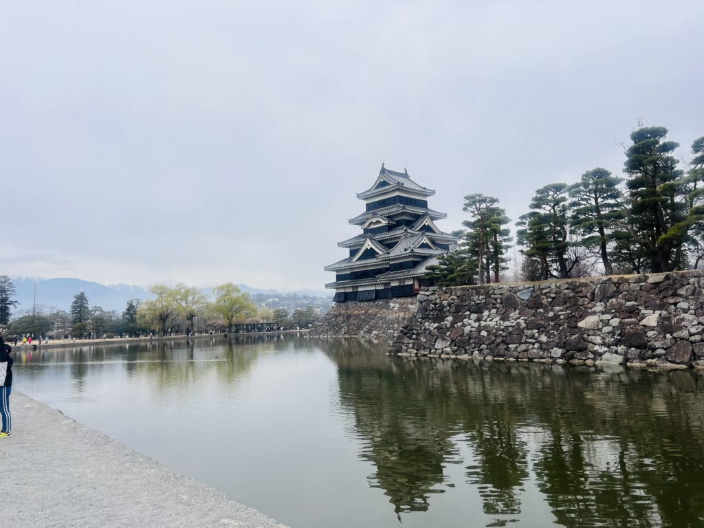 レンタカーを借りて向かった国宝・松本城は、黒漆塗りの外観が映える圧巻の佇まいでした。