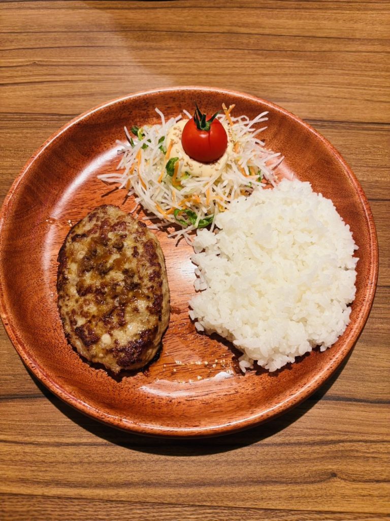 今回いただいたハンバーグは、お箸で切れるほどふっくらとしていてジューシー。