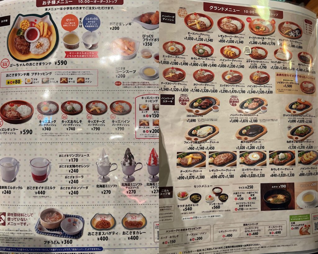実際に足を運んでみると、広々とした店内にリーズナブルな価格帯、そして何より子供から大人まで自分にぴったりのサイズを選べるハンバーグが、ファミリーにはたまらない魅力だと感じました。