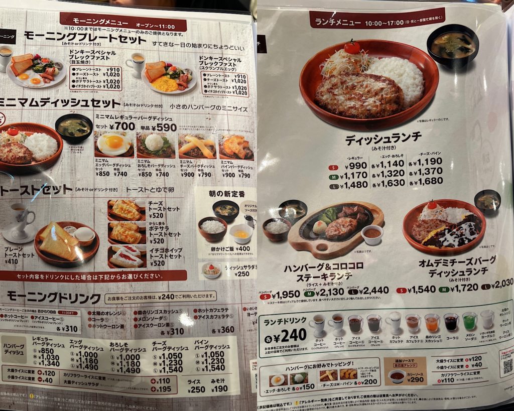 びっくりドンキーのメニューは、名物のハンバーグディッシュを中心に、サイドメニューやデザートまで充実しています。