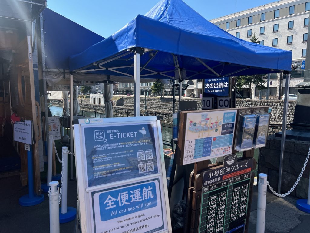 小樽運河クルーズのチケット発券所および乗り場は、運河の中央に位置する「中央橋(ちゅうおうばし)」にあります。