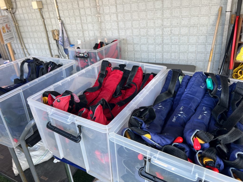 受付を済ませた後は、安全のためにライフジャケットを着用します。