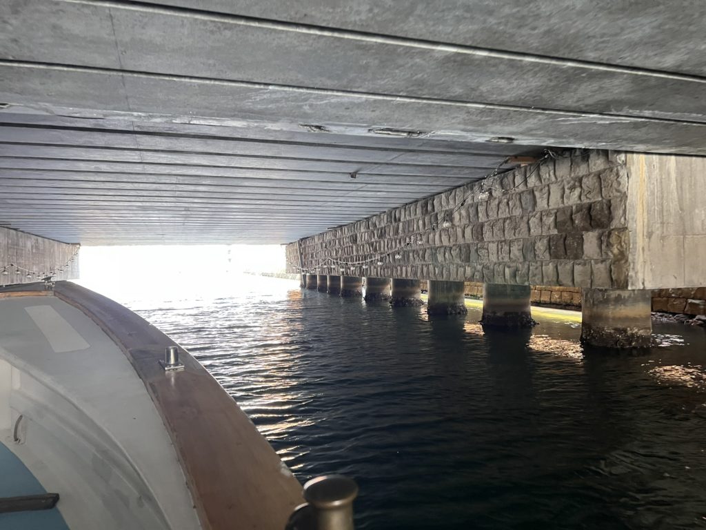 低い橋の下をくぐり抜ける瞬間は、クルーズならではの醍醐味です。
