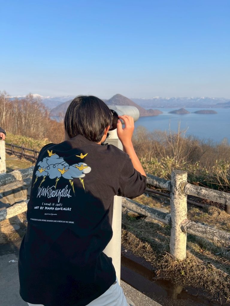 | 16:35 | 絶景撮影・双眼鏡 | 中島や有珠山をバックに写真撮影。備え付けの双眼鏡で湖面や島々をじっくり観察。 |